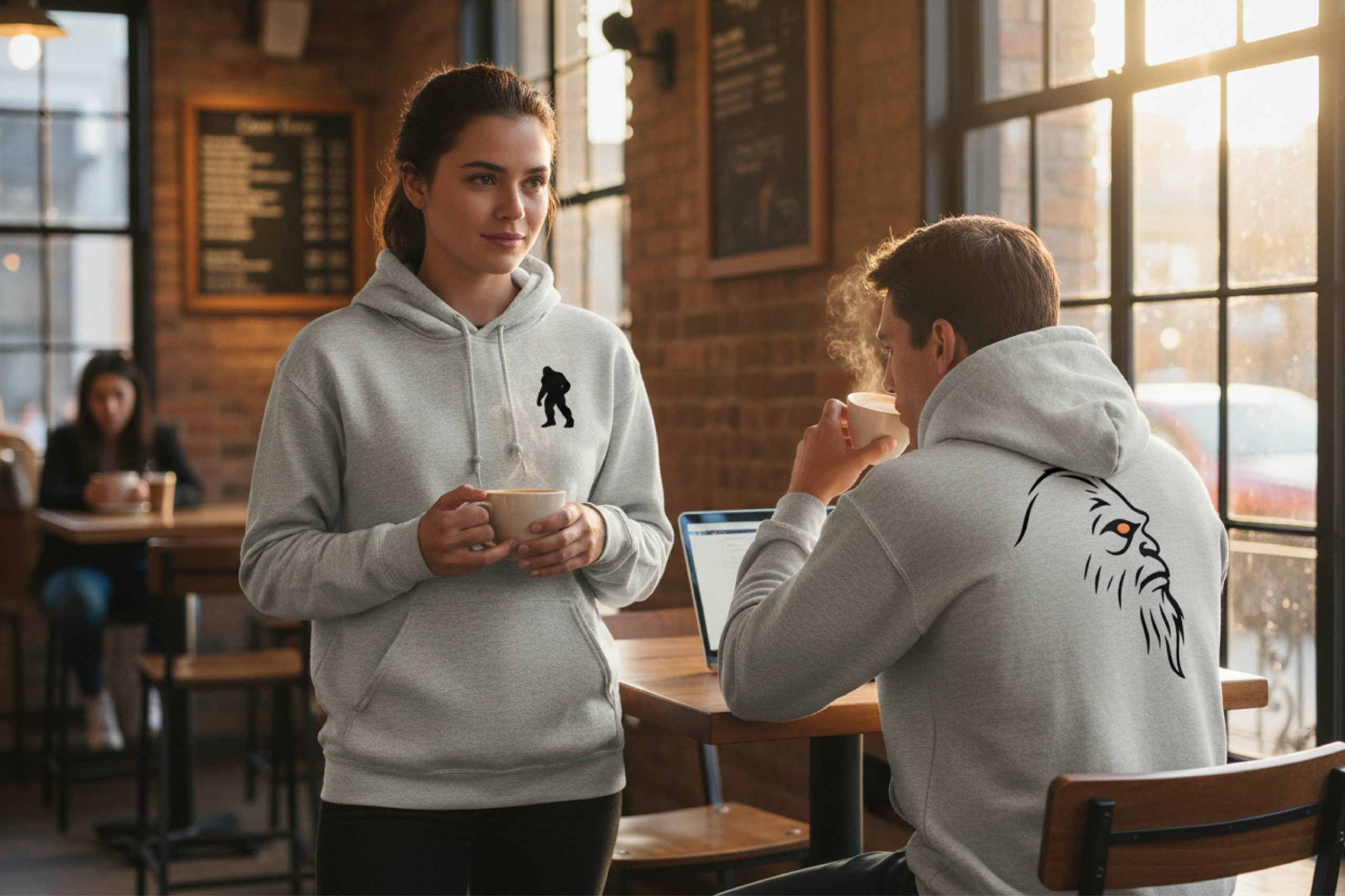Premium Grey Hoodie Black Sil Front/Head Logo Back