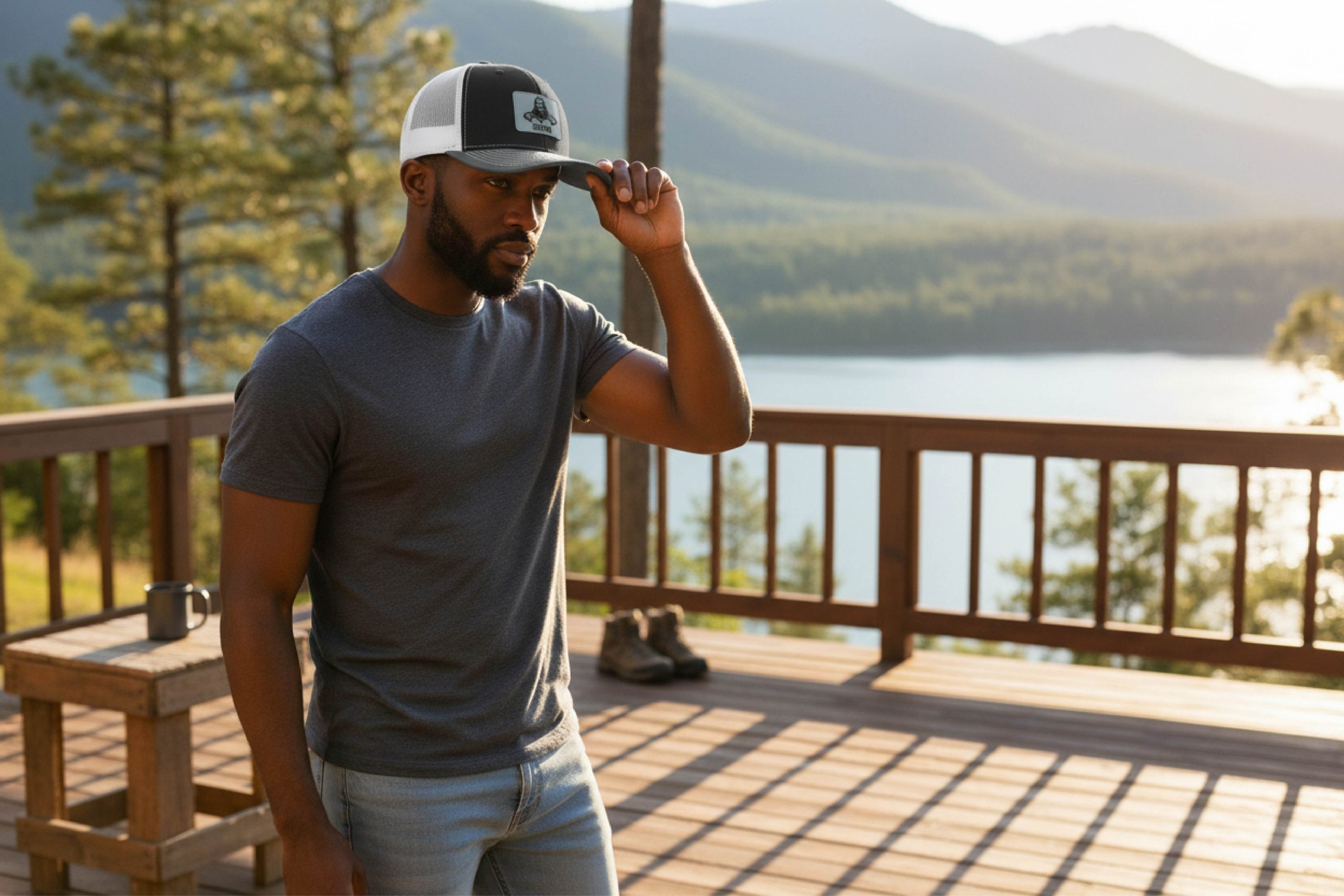 Premium Trucker Hat 112, 115 Series Black Grey Wht Leather Patch