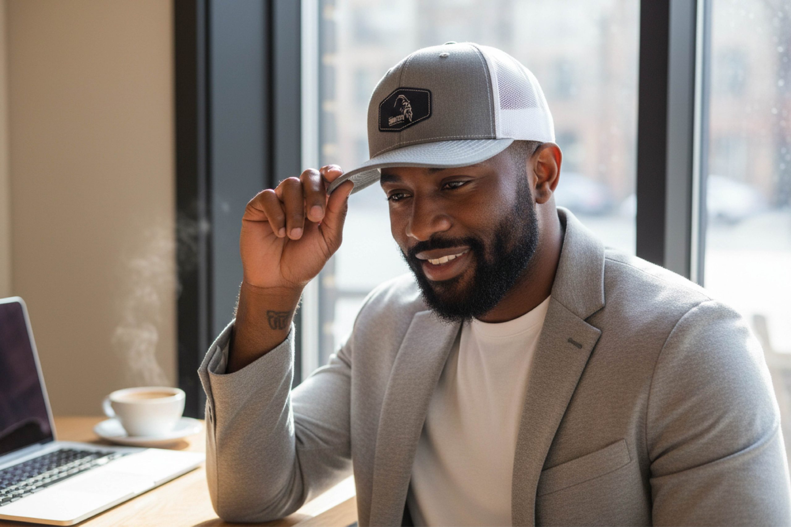 Premium Trucker Hat 112,115 Series Heather Grey Blk/Slv