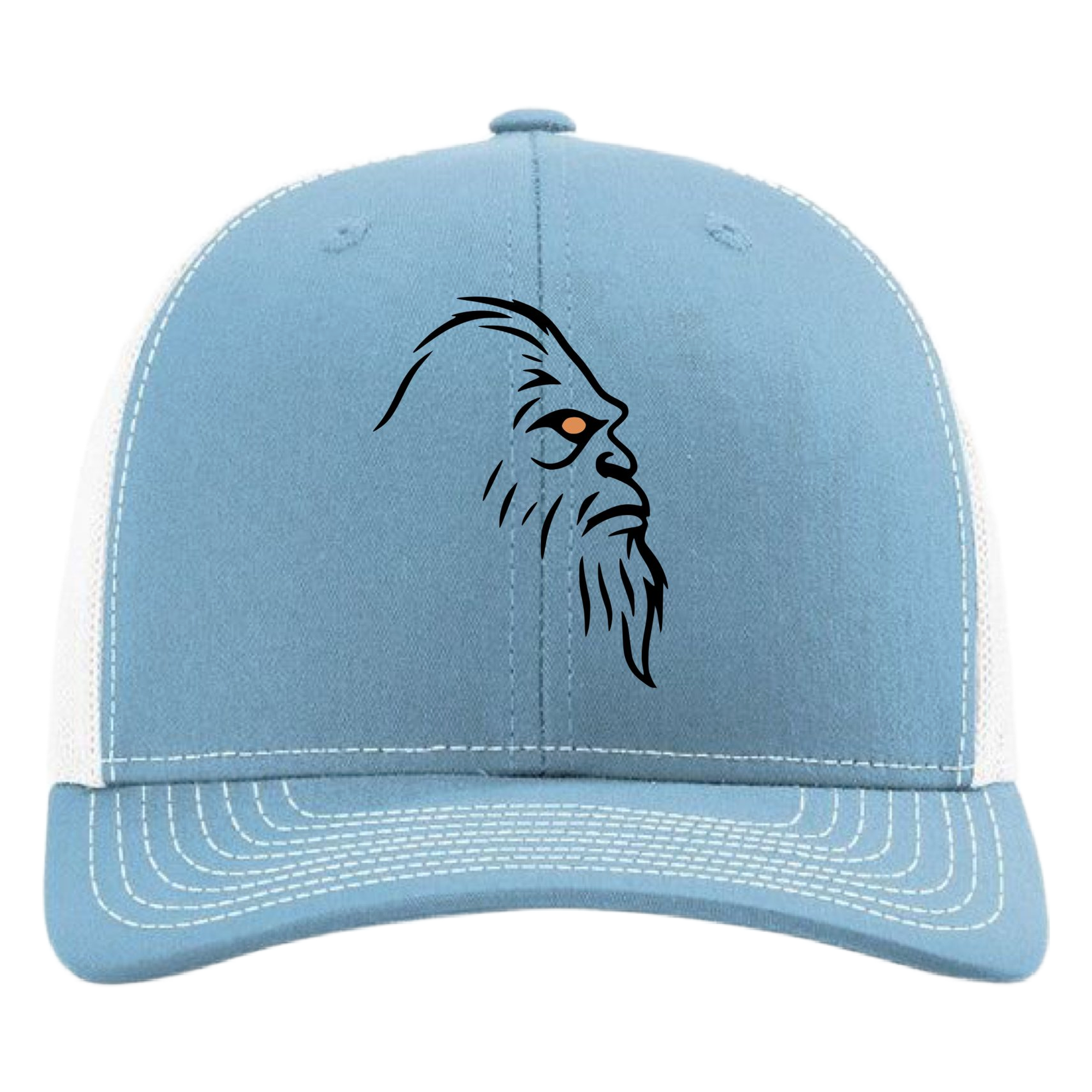 Premium Trucker Hat 112, 115 Series Lt Blue White Blk Logo