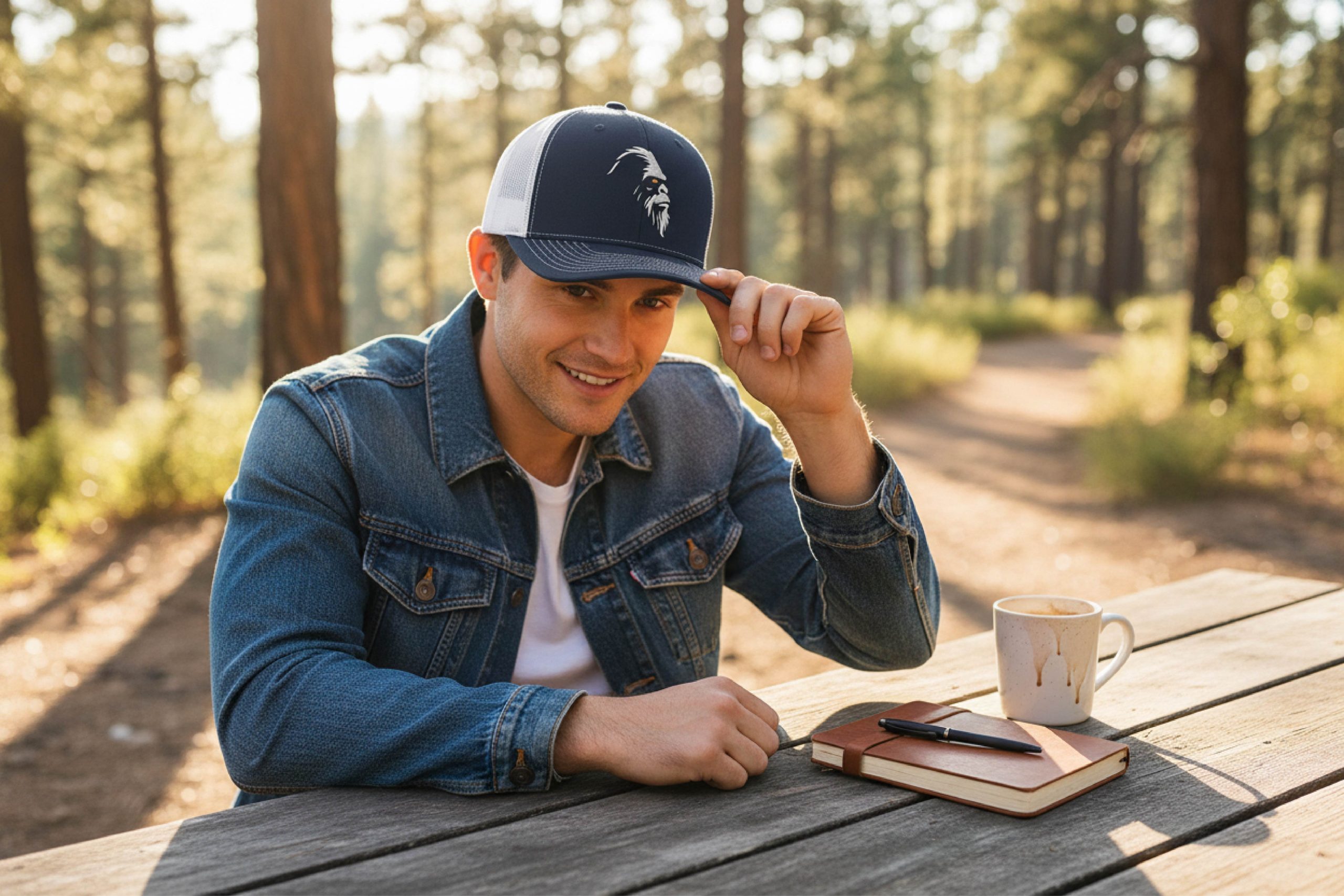 Premium Trucker Hat R 112, 115 Series Navy White Logo