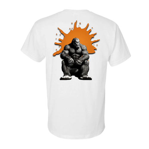 Squatch White T-Shirt Front Head/Resting Squatch Back